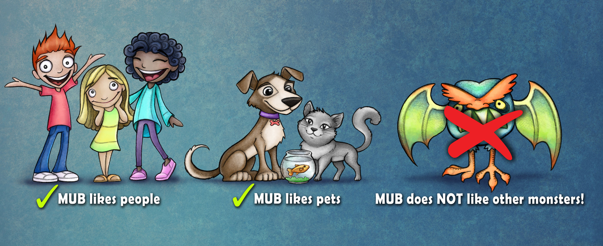 Meet MUB, your devoted, fearless protector! He likes to be the only monster in the room and scares away all other imaginary creepy beasties.